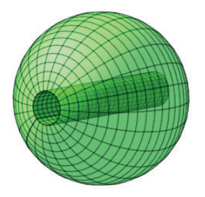 Yllä olevassa kuvassa ympyrä on jaettu ohuisiin ympyrärenkaan muotoisiin osiin. Kun ympyrä leikataan punaista viivaa pitkin ja jokainen ohut ympyrärengas taivutetaan auki, muodostuu kuvassa näkyvä kolmion muotoinen kuvio.