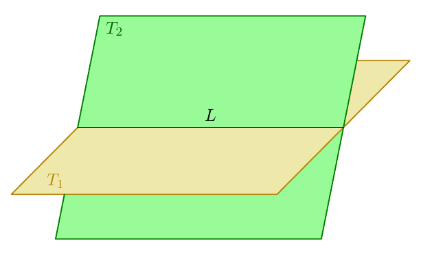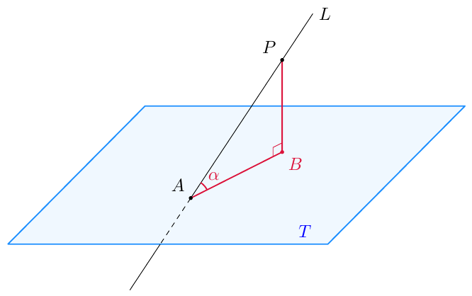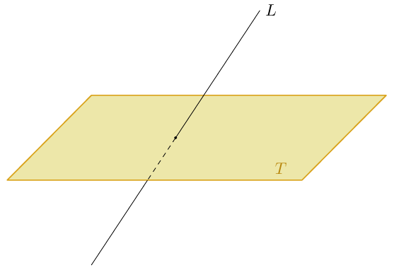 Merkitään tämän suoran ja tangentin leikkauspistettä kirjaimella $Q$. Koska nyt tutkitaan tilannetta, jossa tangentti ja säde $OP$ eivät ole toisiaan vastaan kohtisuorassa, voidaan olla varmoja, että $Q \neq P$.