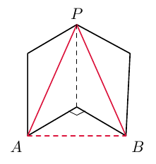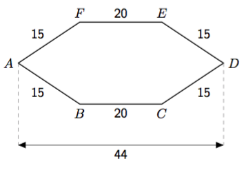 - Merkitse mallikuvaan kaikki keskuskolmion sivujen pituudet ja kulmat, jotka tiedät tai pystyt päättelemään vähällä vaivalla. Palauta mieleesi, millä eri tavoilla kolmion pinta-alan voi laskea.