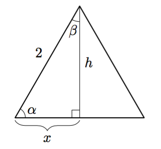 Vinkki: pääset alkuun jakamalla keskuskolmion kahdeksi suorakulmaiseksi kolmioksi ja hyödyntämällä sopivaa trigonometrista suhdetta. - Mitä sanoisit ihmiselle, joka ehdottaa tällaisen tunnelin rakentamista?
