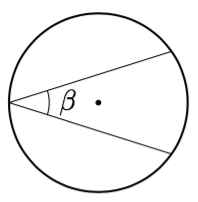 - Piirrä vihkoosi harpin avulla ympyrä. Valitse ympyrän kehältä pisteet $A$ ja $B$ ja niiden välisistä kaarista toinen. Piirrä jokin tätä kaarta vastaava kehäkulma. Anna sille nimeksi $\beta$.