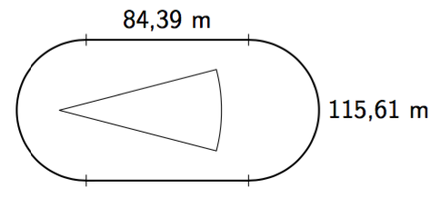Alla on kuvattu yleisurheilukentän juoksuratojen sisäpuolinen alue. Päädyt ovat puoliympyrän muotoiset. Kaarteen pituus on 115,61 metriä.
