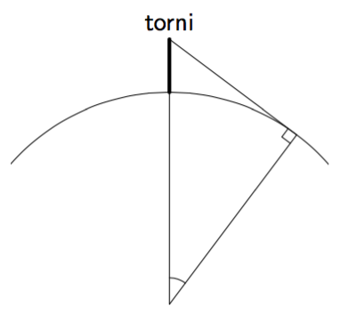- Laske keskuskulmaa vastaavan kaaren pituus (horisontin etäisyys maanpintaa pitkin). Miten kauas Tallinnan televisiotornista on mahdollista nähdä kirkkaalla säällä?