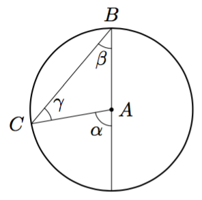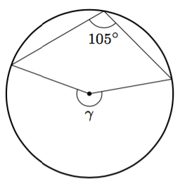 Päättele kulman $\gamma$ suuruus kehäkulmalauseen avulla.