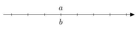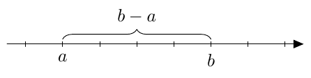 Lukujen $a$ ja $b$ välinen etäisyys lukusuoralla on $\left|a-b\right|$.