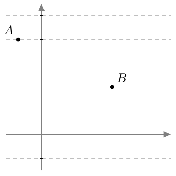Tehtävänä on laskea kuvassa näkyvien pisteiden $A$ ja $B$ välinen etäisyys.