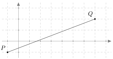 1. Päättele kuvan avulla, mitkä ovat janan $PQ$ keskipisteen koordinaatit.