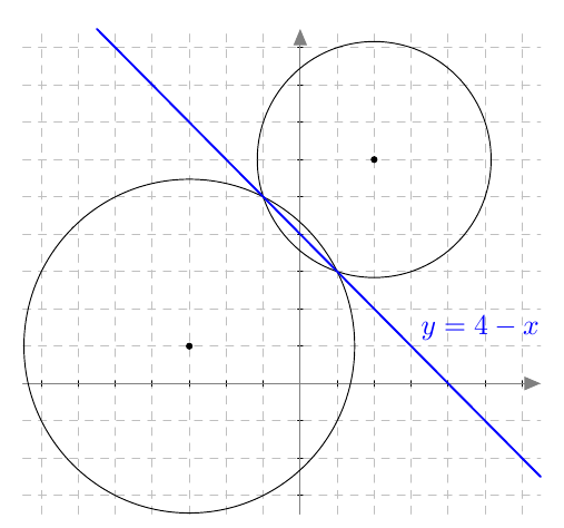 Vinkki: aloita selvittämällä ympyröiden keskipisteet ja säteet.